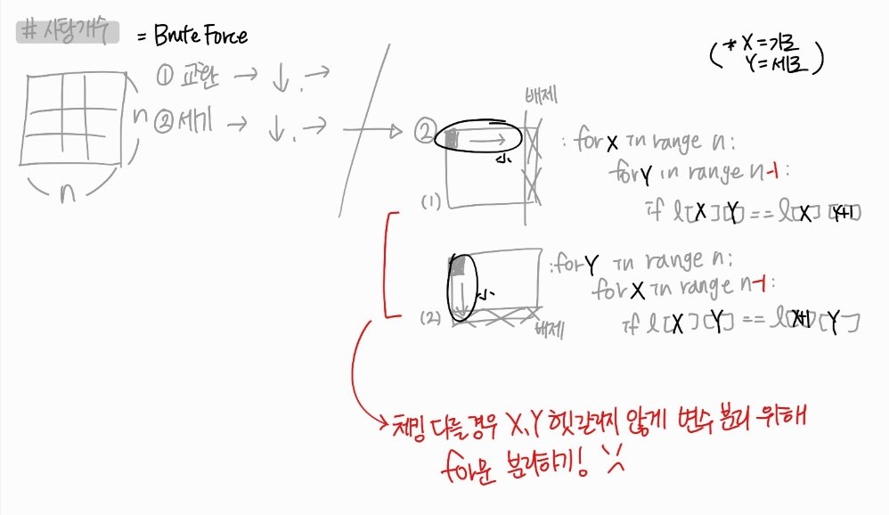 def search_max_candy(n, candy_l): # κ³ μ λ μν©. μ΅λ μΊλ μλ§ μΈκΈ°.