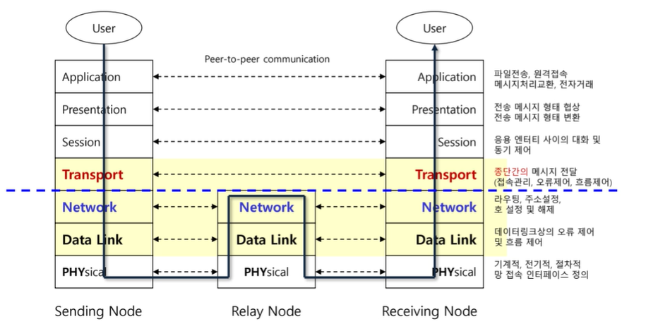 : ๊ฐ ๊ณ์ธต์์ Peer๋ค ์ฌ์ด์ ๋ ผ๋ฆฌ์ ์ผ๋ก ์ง์ ์ฐ๊ฒฐ๋์ด ํต์ ํ๋ ๊ฒ์ผ๋ก ๊ฐ์ฃผ. (์ค์ X)