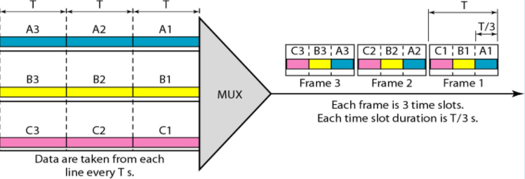 : ํต์ ๋งํฌ ์ฃผํ์ ํ๋๋ฅผ ์๊ฐ ์ฌ๋ก(Time Slot)์ผ๋ก ๋๋ ์ฑ๋์ ํ ๋นํ์ฌ ๋ค์คํํ๋ Multiplexing ๊ธฐ์ ์ผ๋ก์จ, ๊ฐ๋ณ ์ ํธ/์ฑ๋์ด ํ ์ฃผํ์ ๋์ญ์ ์๊ฐ์ ๋ถํ ํ์ฌ ์ฌ์ฉํ๋ ๊ธฐ์ ์ ๋งํ๋ค. - TDM์ ์ข
