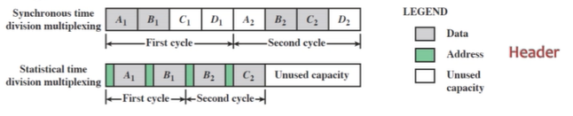 2. ๋ค์ค๋ณต๊ตฌ(Demultiplexing)์, ์ก์ ์์ ์ฃผ์์ ๋ํ ์ถ๊ฐ์ ์ ๋ณด์ธ ํค๋๊ฐ ํ์ํ๋ค. - Statistical/Asynchronous TDM์ ์ฅ/๋จ์